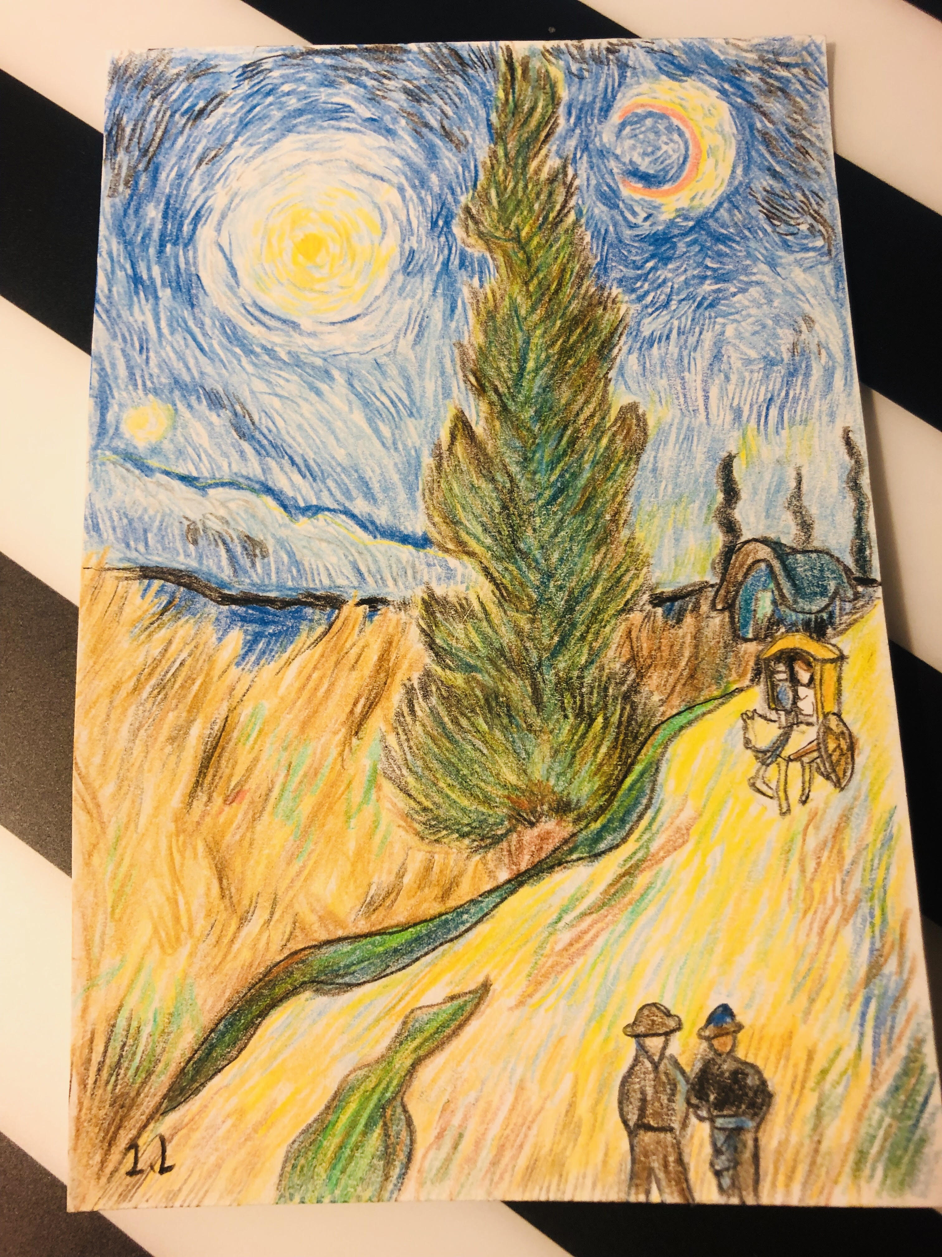 Previous Image Next Image vg Road with Cypress and Star (After Van Gogh); a birthday gift to a friend